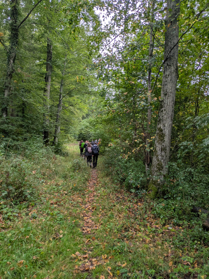 Am Montag den 22.09. brachen 36 Schülerinnen dem Wetter zum Trotz auf, um das schöne Donautal zu besuchen. Allerdings nicht so, wie es Neuntklässlerinnen üblicherweise machen würden – mit dem Auto – sondern zu Fuß. In drei Gruppen wanderten die Mädchen der beiden neunten Klassen zusammen mit den Begleitlehrer:innen Heidi Linster, Ines Schönegg, Joachim Ott und Petra Golz und den beiden Hauptorganisatorinnen Erin Merlin und Carolin Veeser von Rohrdorf, Vilsingen und Laiz aus zum Zeltplatz direkt an der Donau in Gutenstein. Diese Strecken am Nachmittag waren alle um die 10km lang, dabei schlugen sich die Mädchen wacker und die Stimmung war gut. Es gab unterwegs so manch ungeplante Überraschungen, so wurde eine Gruppe von Dietfurt bis zum Zeltplatz von einem wildfremden Hund begleitet, der dann über verschiedenste Personen seinen Weg zurück zu seinen Herrchen fand.