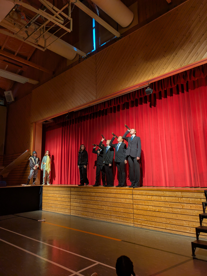 Dass die Musicalaufführung überhaupt so ein großartiges Projekt werden konnte bedarf der Zusammenarbeit vieler Helfer. So wurden teils im Kunstunterricht Requisiten und Bühnenbilder gebastelt, es gab Bastelaktionen in Ferien, bei denen Eltern, Schülerinnen und Kolleginnen teilgenommen haben, andere Kollegen haben das Flugzeug gebastelt und die Licht- und Ton-AG unter der Leitung von Julian Pfau hat die ganze Woche vor und während der Aufführung die Technik bedient.