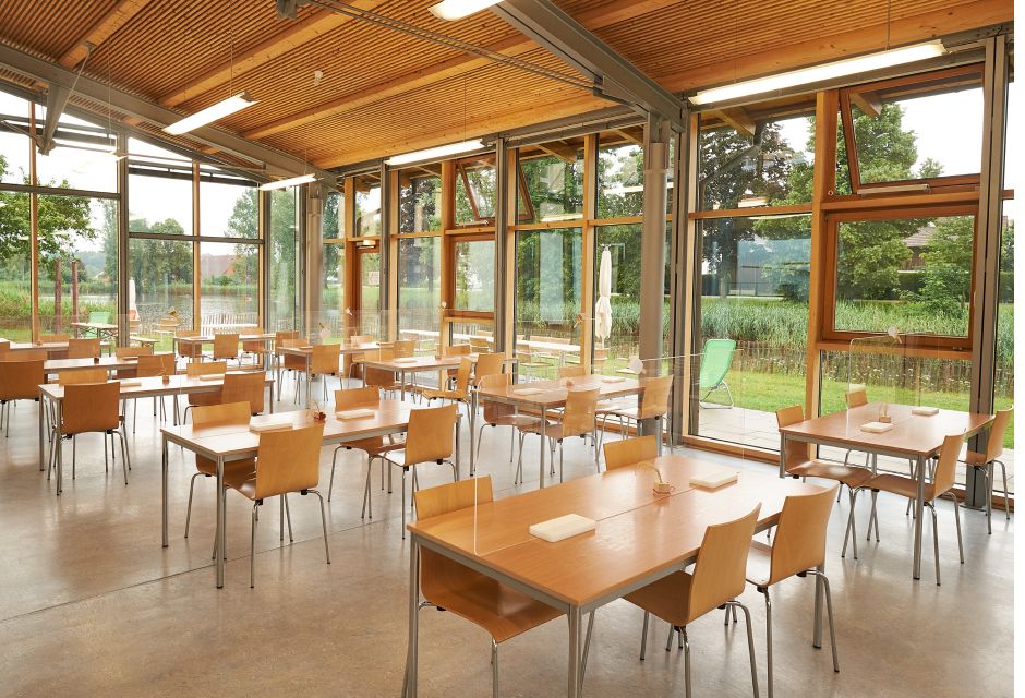 Das Küchenteam um Leiterin Andrea Wolf umfasst 12 Mitarbeiterinnen in Teilzeit, was 7,4 Vollzeitkräften entspricht. Jeden Tag wird frisch gekocht. Das täglich neu bestückte Salatbüffet weist mindestens acht verschiedene Salate auf. Es werden auch Sonderkostformen angeboten: veganes, laktosefreies, glutenfreies und vegetarisches Essen.
