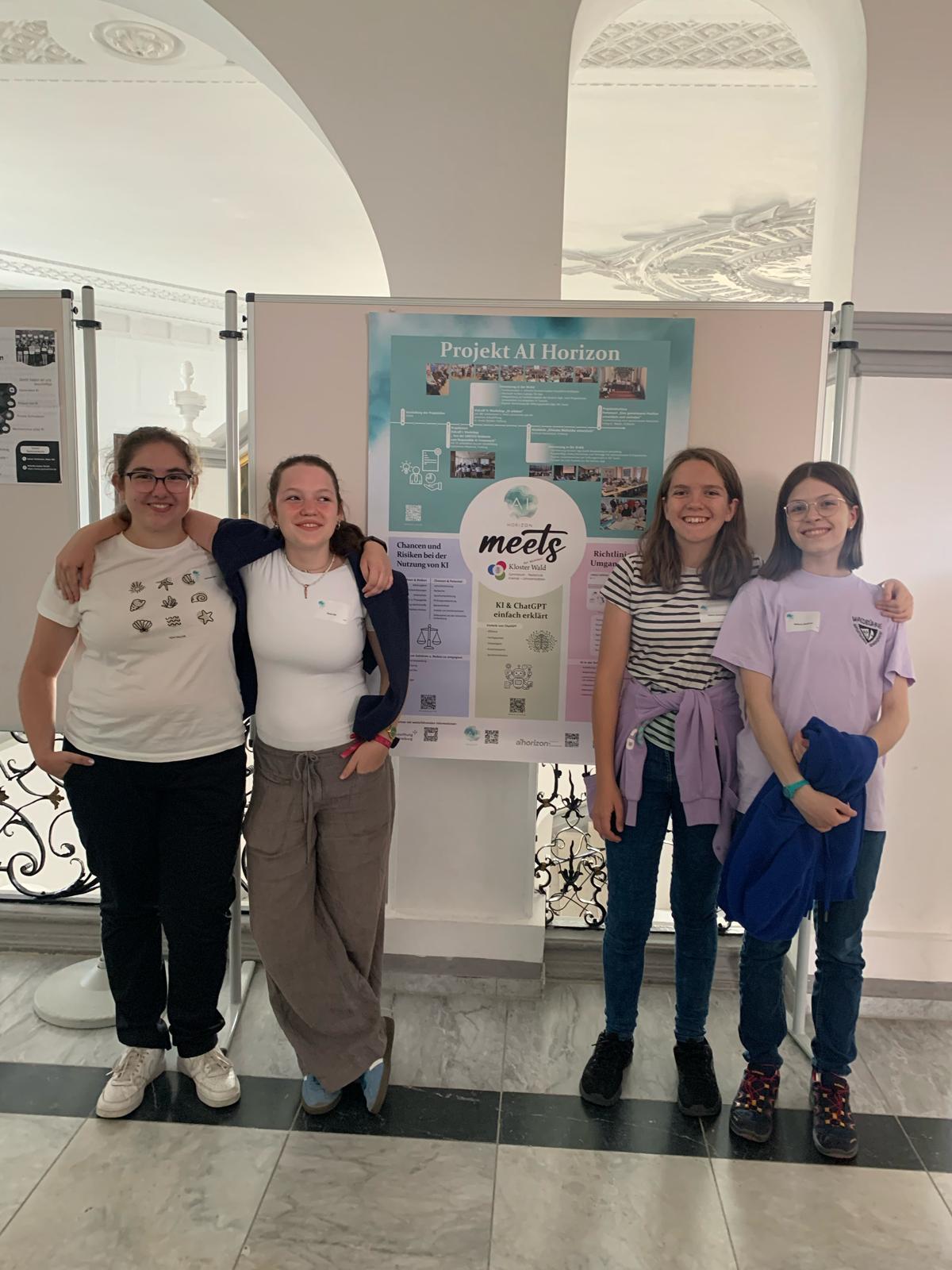 Unsere Schule wurde dort durch Rebecca Riedißer, Felicitas Will, Devia Sax und Helena Günther vertreten, die zwei Tage lang intensiv in den Gremien arbeiteten, diskutierten und am Ende gemeinsam mit den anderen Teilnehmenden ein starkes Resolutionspapier erarbeiteten und verabschiedeten. Die Botschaft ist klar: Künstliche Intelligenz ist längst Teil unseres (Schul-)Alltags – und Schule muss nachziehen! Wir wollen aktiv mitgestalten, wie wir damit umgehen und nicht nur Konsumenten sein!