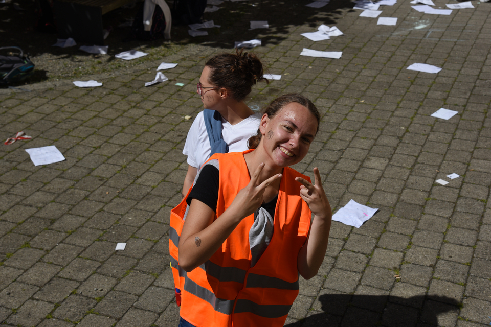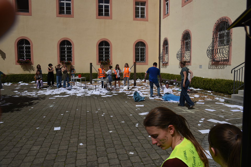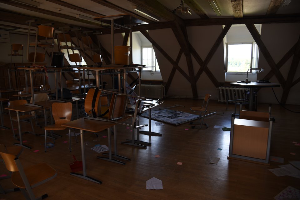 Positiv zu erwähnen ist, dass nach all dem Schindluder, den die Schülerinnen getrieben haben, alle aus der Stufe mitgeholfen haben, das Schulgebäude wieder begehbar zu machen, alles aufzuräumen und zurückzustellen, so dass schon der Nachmittagsunterricht wieder ungestört stattfinden konnte.