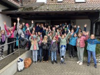 Zum Abschluss der durch das Mittagessen unterbrochenen mittäglichen Beschäftigung praktizierten die Mädchen erst freies Spiel, anschließend ein großes Fußballspiel, bei welchem die Lehrkräfte mitwirkten, und schließlich das Spiel „Peter Pan", eine Art erweitertes Fangi. Nach dem Abendessen guckten die 42 Kinder dann gemeinsam mit ihrer Begleitung in der Kapelle den Film „Amy und die Wildgänse". Beim Anblick der kleinen wuselnden Tierchen ging große Verzückung durch den Raum – und umso leichter „flog" es sich danach „in den Schlaf".