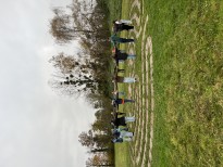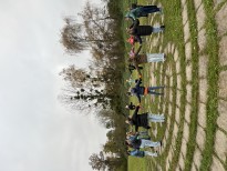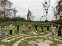 Der nächste Tag startete mit einem tollen Frühstück, danach ging es mit weiteren Gruppenspielen weiter. Dieses Mal stand Vertrauen konzeptuell über der gemeinsamen Beschäftigung. Ein großes elastisches Band umspannte beispielsweise in einer Übung eine Klasse und führte zur großen Erkenntnis, dass gemeinsames Zurücklehnen und Fallenlassen in das Band vom Kollektiv „abgefangen" werden kann. Eine jede dachte so über ihre eigene Wichtigkeit und Rolle im Klassenverband nach. Auch das Augenverbinden und sorgsame Führen in Kleingruppen im „Labyrinth" auf der Wiese unter Leitung der Schulseelsorgerin Ines Schramm machte den Schülerinnen großen Spaß.