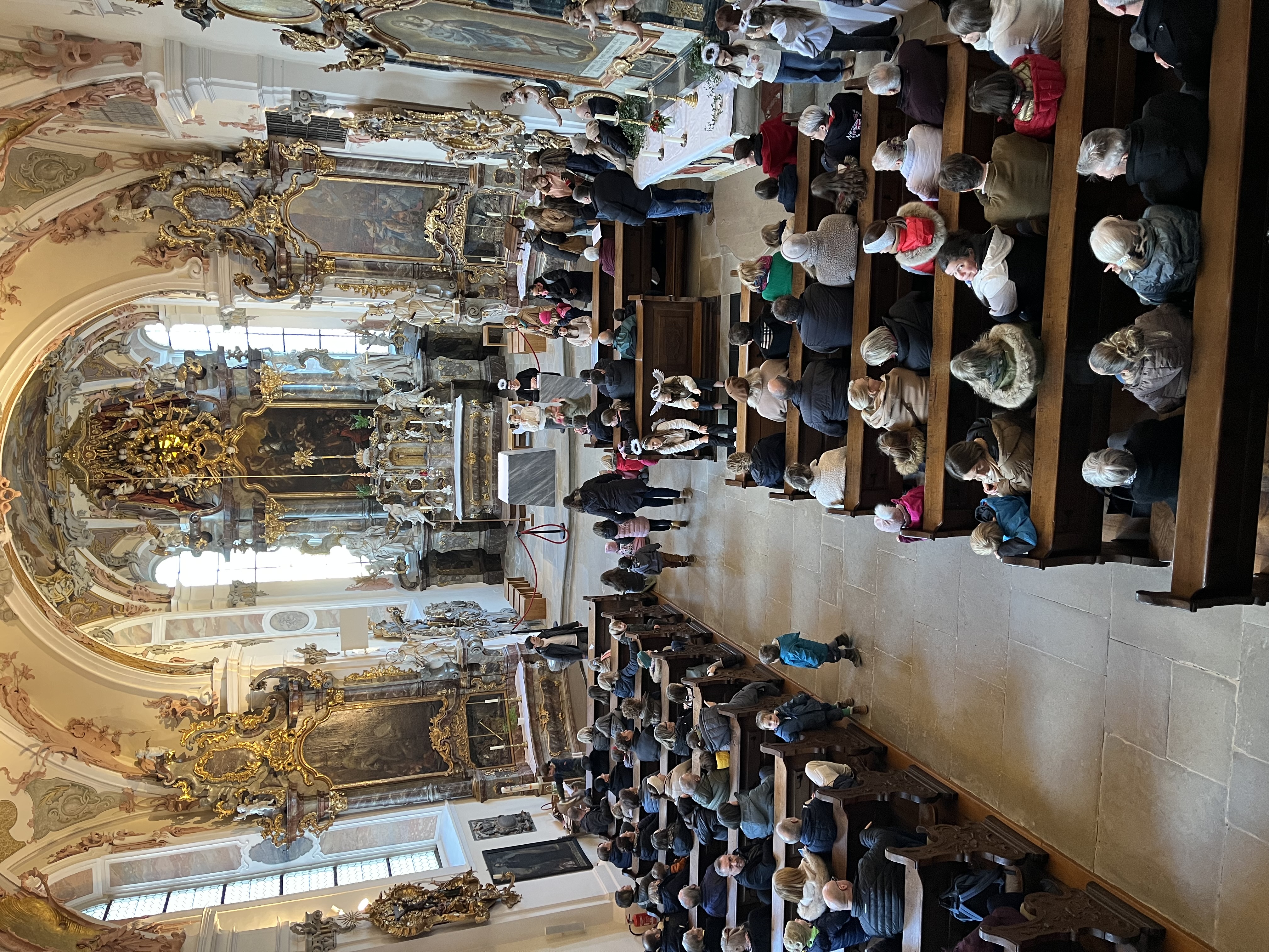 Aber der Reihe nach: Den Startschuss für den tollen Nachmittag am 30. November, also zwei Tage vor dem ersten Advent, lieferte ein selbstgeschriebenes Stück der Klasse 6 unter Leitung ihrer Klassenlehrerin Bianca Rauschenberger-Großmann in der Klosterkirche. Mit Liebe zum Detail als kleine Engelchen verkleidete Schülerinnen üben sich zu Beginn der Einlage in Kritik am ewig gleichen „Gloria"-Singen. Sie fordern stattdessen moderne Songs ein. Aber dies wird im Siebten Himmel nicht geduldet. Die Folge: Einige Gottesbotinnen plumpsen prompt aus dem Wolkenreich und können dann nur noch mittels Fernglas beobachtet werden. Doch Rettung naht – und spätestens beim gemeinsamen Singen des Evergreens „Last Christmas" ist alles wieder gut. Das heitere und kurzweilige Stück war überaus gelungen und wusste alle Anwesenden in der Kirche gut zu unterhalten und begeistern, was auch an der tollen Unterstützung durch die Waldlerchen unter Leitung von Isabell Marquardt lag.