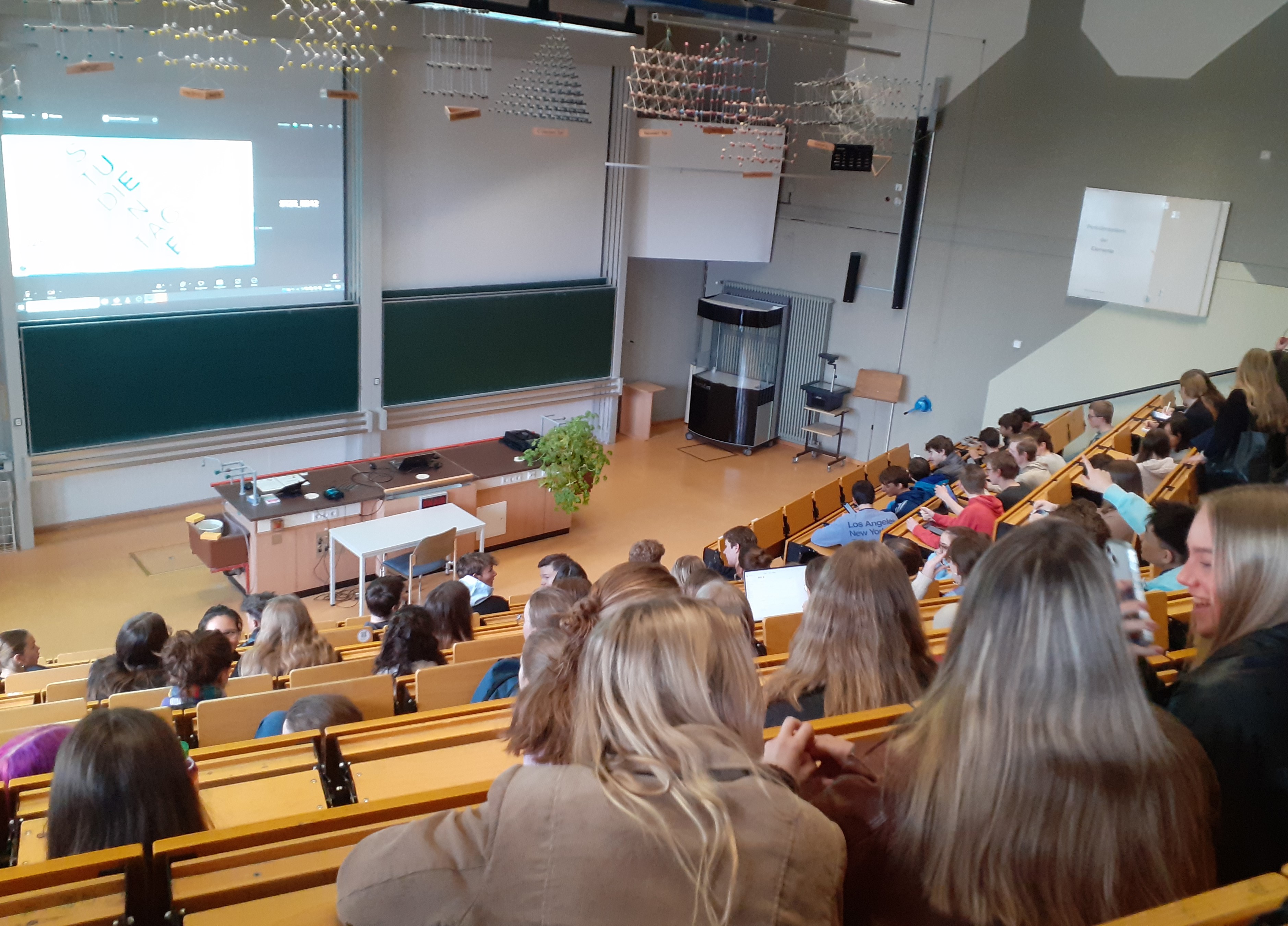Mittwoch, 12. März 2025: Die Stufe 11 befindet sich, begleitet von Herrn Pfau und Herrn Huber, auf dem Weg zur Universität Konstanz, die „extra für uns" viele Baustellen aufgebaut hat, was ironisch klingt, aber auch wirklich stimmt: Zukünftige Studentinnen an der Universität Konstanz werden frisch renovierte und viele nagelneue Räume und Einrichtungen genießen können! Gemeinsam und nach persönlicher Fachwahl erleben wir einen sehr informativen Tag mit interessanten Vorlesungen, leckerem Mittagessen und viel „Uni-Atmosphäre", Studierende beantworten Fragen zum Studenten-Alltag und dem jeweiligen Fach. So eröffnet uns dieser Einblick in den Uni-Alltag viele Perspektiven, was wir nach dem Abi machen möchten - oder was eher nicht. Die Bilanz: Es war sehr interessant und das Lernen an der Universität ist irgendwie anders, als man es aus der Schule kennt.