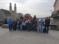 Unser Tag in Zürich hat mit einer Stadtführung mit Maria Abegg begonnen. Auf Schweizerdeutsch entdeckten wir zuerst die Wohnhäuser von berühmten Personen, wie zum Beispiel das der „Heidi"- Autorin Johanna Spyri. Von dem Verlagshaus Diogenes führte unser Weg am Züricher Kunsthaus vorbei in das Niederdorf. Durch die Gassen der alten Fachwerkhäuser durch ging es zum Grossmünster und über die Limmat hinüber zum Fraumünster mit seinen Giacometti Fenstern. Frau Abegg führte uns zu einem von 1300 Züricher Brunnen, dem sogenannten Münsterbrunnen, aus dem ab und zu auch mal Wein fließt und der von schönen Zunfthäusern umgeben wird. Zurück ging es wieder durch die Altstadt, wo drei unserer Mitschülerinnen nach je fünf Liegestützen eine Zimtschnecke geschenkt bekommen haben, in Richtung Verlagshaus von Diogenes, wo wir uns von unserer sehr netten Stadtführerin verabschiedeten und uns auf das nächste Highlight freuten. (Foto 1)