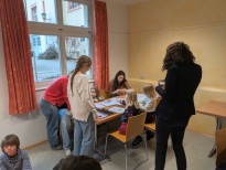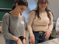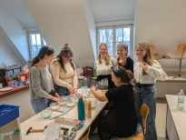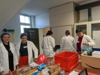 Da diese „trockenen" Informationen für die interessierten Schülerinnen zu langweilig wären, durften sich diese kurz darauf mit Schülerinnen der Heimschule Kloster Wald auf Erkundungstour begeben. Sie besuchten die verschiedensten Stationen, die die Schülerinnen und MitarbeiterInnen der Heimschule für sie vorbereitet hatten. Bei der Bildenden Kunst erstellten die Mädchen wunderschöne, individuelle Anhänger, bei der Musical-AG durften sie in eine andere Rolle schlüpfen, bei Sport war logischerweise viel Bewegung dabei und in Biologie wurde mikroskopiert und vieles mehr. Die Englischfachschaft stellte die verschiedenen Austauschmöglichkeiten mit je einer englischen, irischen und australischen Schule vor – dabei berichteten Schülerinnen aus erster Hand von dem jeweiligen Austausch, und die Klasse 6 ein Quiz für die interessierten Schülerinnen vorbereitet. Der Höhepunkt war aber vermutlich die Chemieshow, bei der sie Wasser verzauberten, Tinte herzauberten, eine „komische" Masse ertasteten, die gleichzeitig flüssig und hart war - und sie sahen zu, wie sich unsere Chemieschülerinnen die Hände „verbrannten" – natürlich alles gefahrlos.