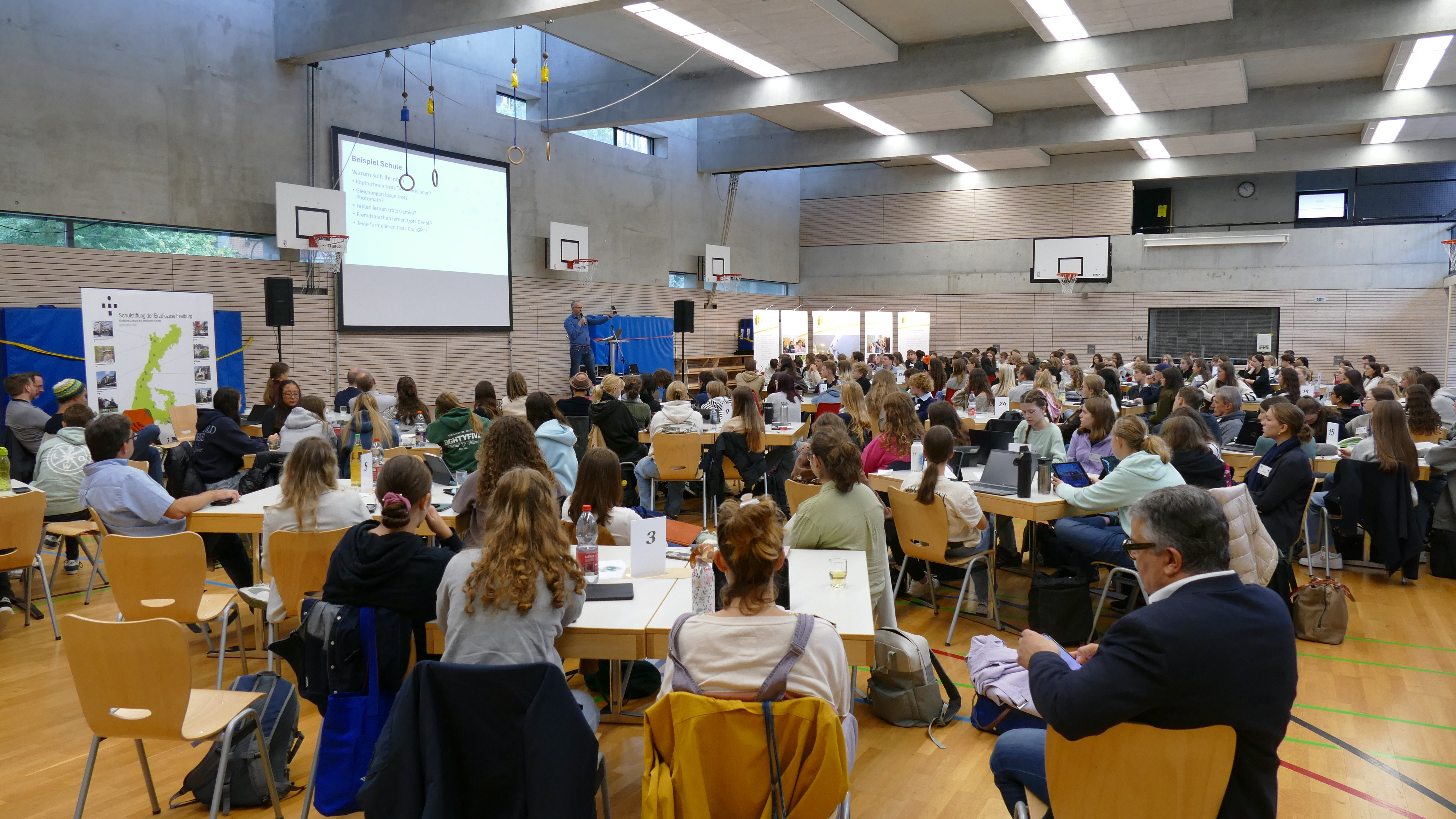 Abschließend durften Schüler/-innen sowie Lehrkräfte den drei Referent/innen im Plenum Fragen stellen, was bis zum Ende der Veranstaltung auch getan wurde.