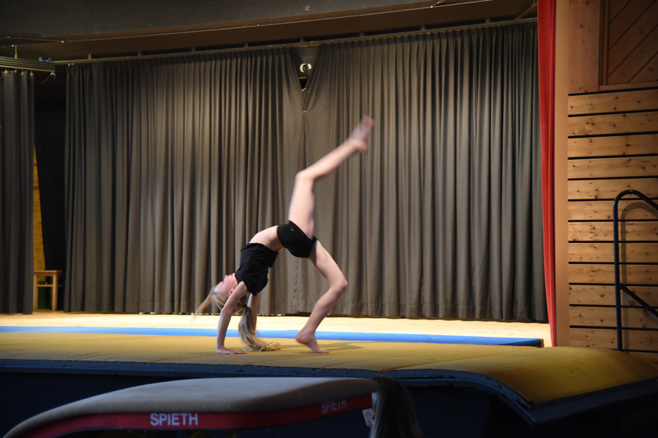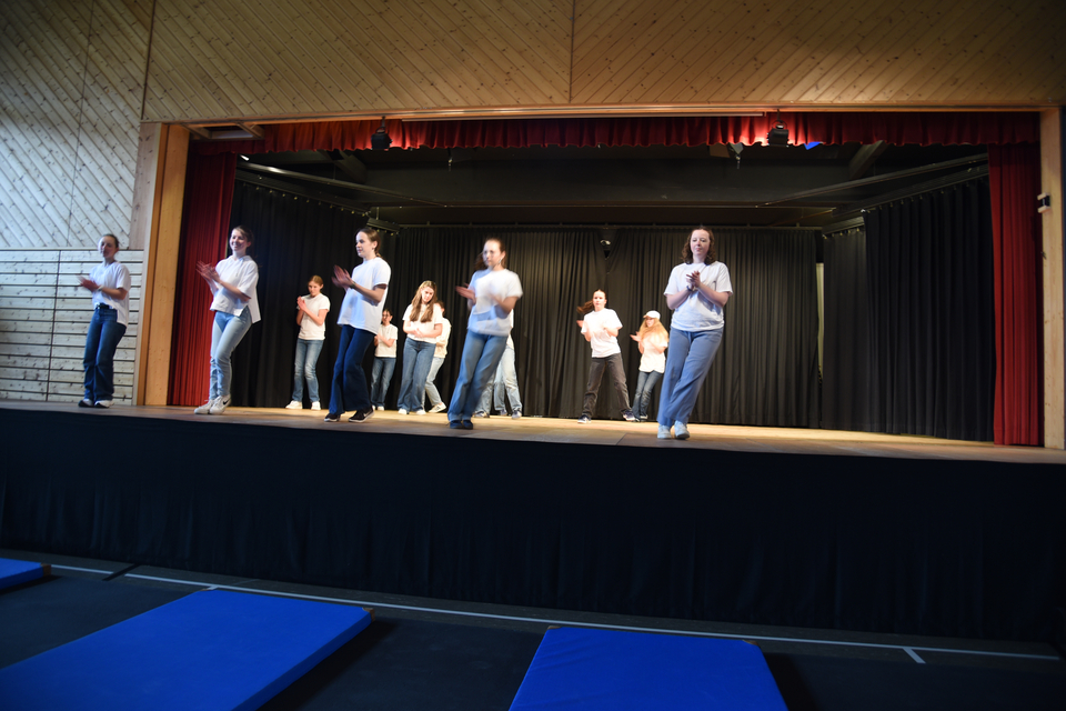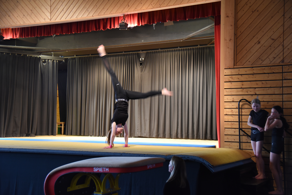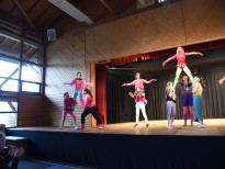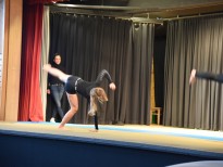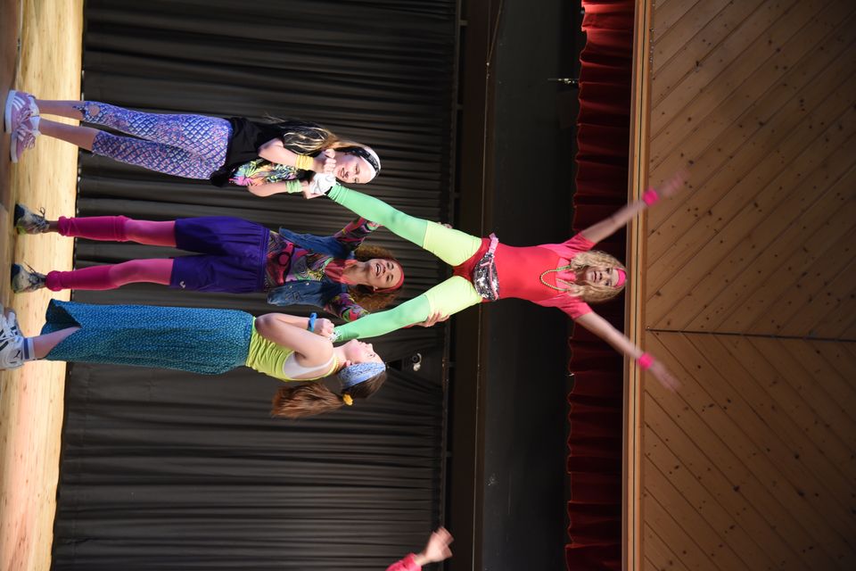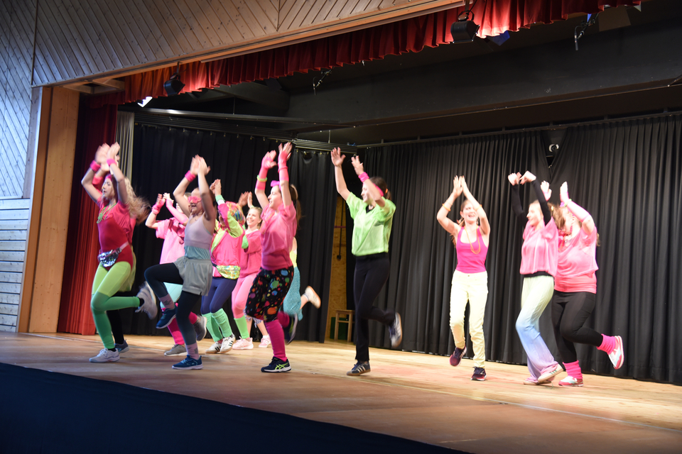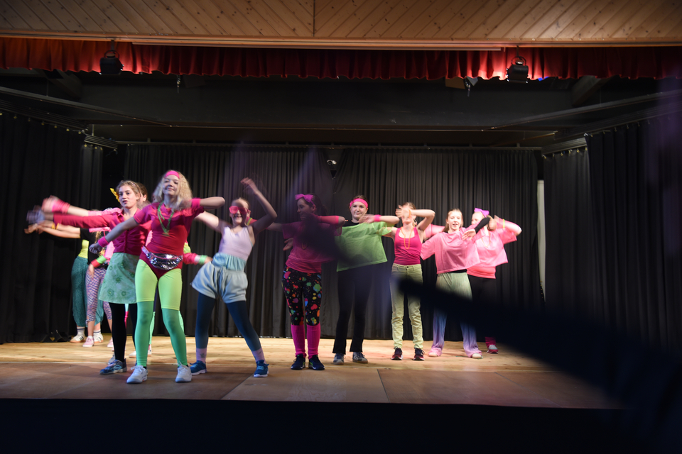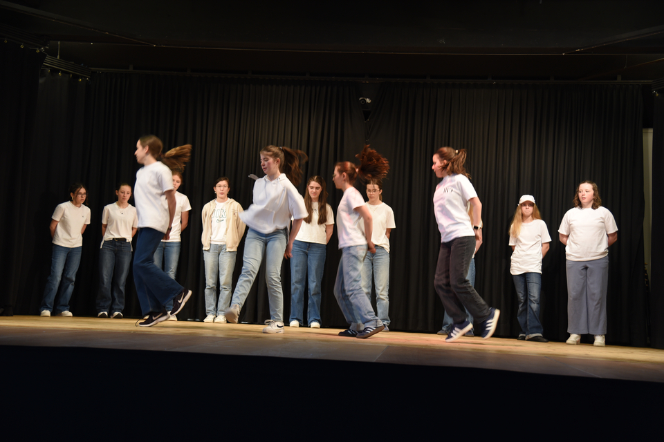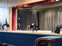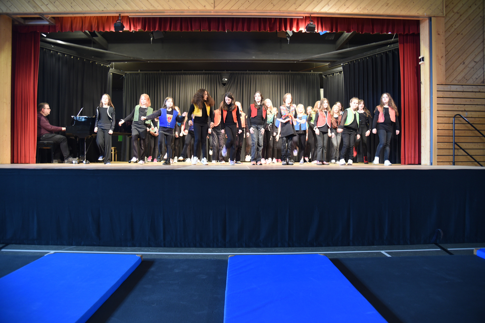 Das Highlight des Tages waren sicherlich die musikalischen und sportlichen Darbietungen in der Sporthalle. Hier zeigten die Schülerinnen ihren Eltern, was sie alles (neben dem Lernen) an der Schule so machen. Hier war alles dabei - angefangen von den Streicherklassen und dem Orchester, beides unter der Leitung von Gudrun Hafner, über stimmvolle Gesangsdarbietungen des Chors und der Waldlerchen unter der Leitung von Isabell Marquardt bis hin zu mitreißenden und abwechslungsreichen Tänzen und Vorführungen einzelner Klassen und der klassenübergreifenden Turnschau. Die Musikstücke waren abwechslungsreich und bestens auf die Zusammensetzung der jeweiligen Gruppe abgestimmt. Die Tänze der Klassen deckten auch verschiedene Bereiche ab - Jumpstyle, Linedance und anspruchsvolle Choreografien. Sogar das Publikum wurde von der quietschbunten Truppe dazu animiert mitzumachen, das gab es so noch nie. Die Turnerinnen zeigten Handstand, Rad, Bogengang und vieles mehr und flogen in hohem Bogen davon - zumindest wirkte es so, als sie am Ende waghalsige Sprünge auf dem Trampolin wagten. Vielen Dank an die Sportlehrerinnen Jasmin Schick, Jennifer Frirdich, Claudia Madlener und Ines Schramm für das Einstudieren dieser tollen Shows!