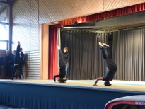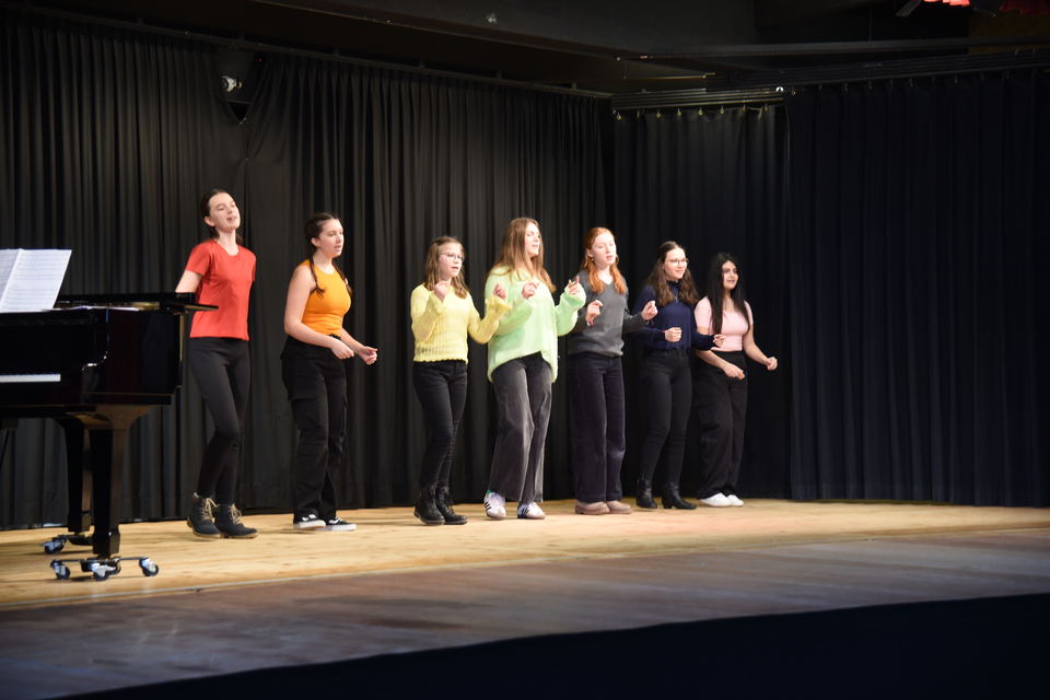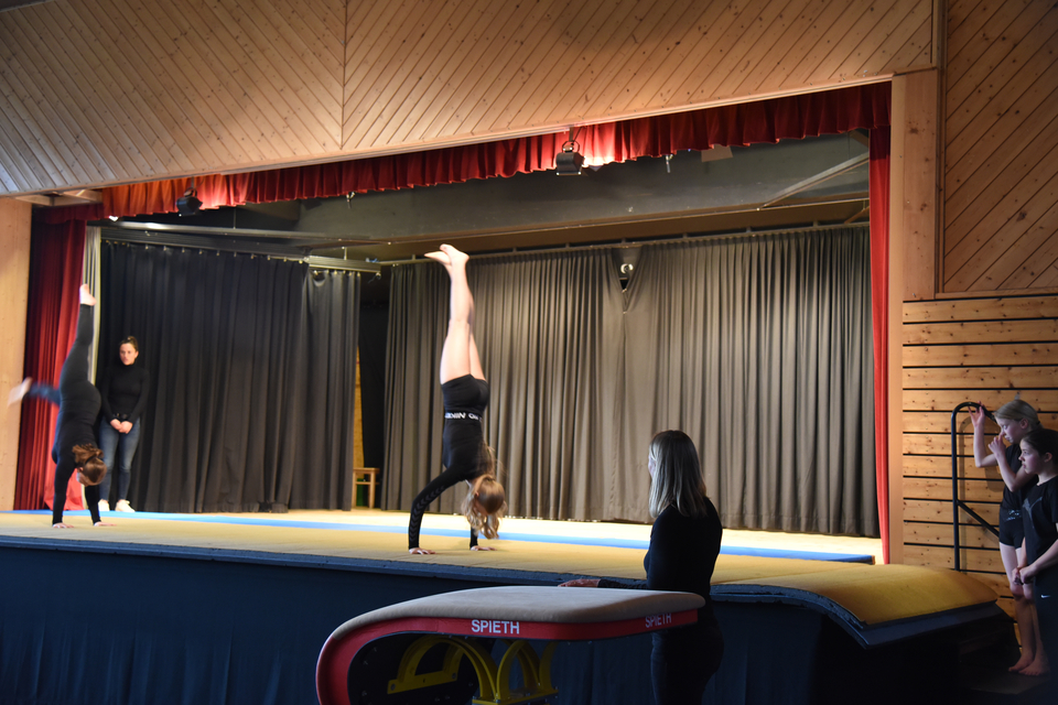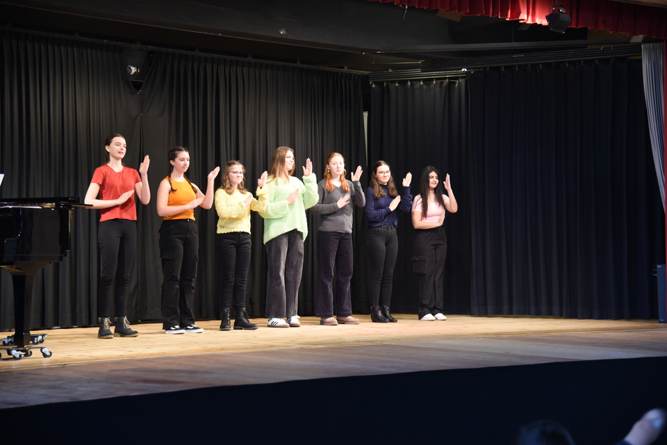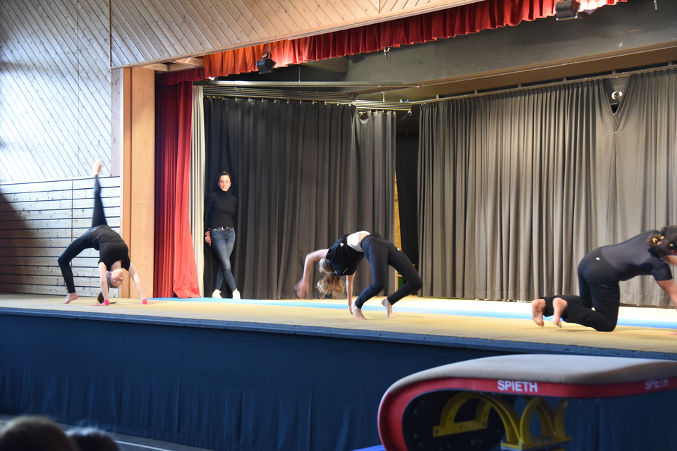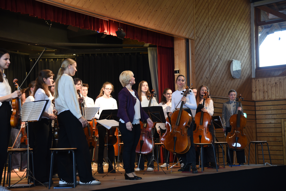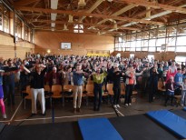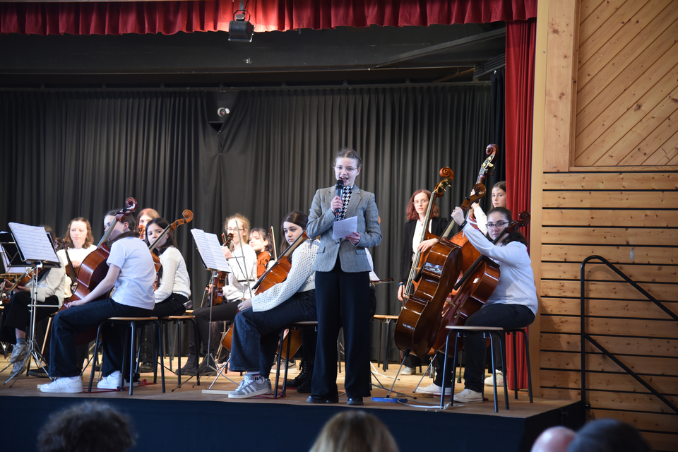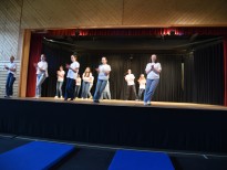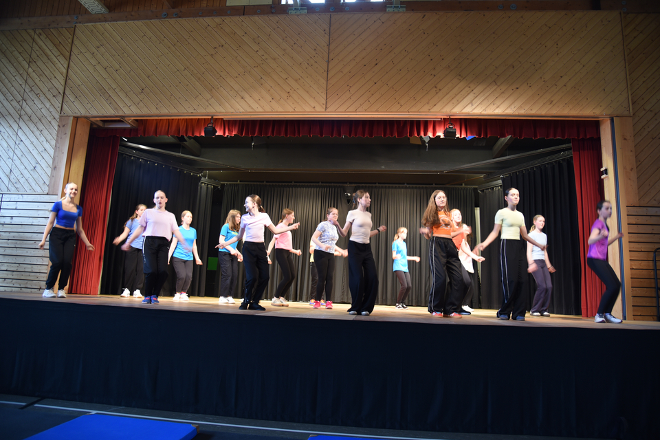 Das Highlight des Tages waren sicherlich die musikalischen und sportlichen Darbietungen in der Sporthalle. Hier zeigten die Schülerinnen ihren Eltern, was sie alles (neben dem Lernen) an der Schule so machen. Hier war alles dabei - angefangen von den Streicherklassen und dem Orchester, beides unter der Leitung von Gudrun Hafner, über stimmvolle Gesangsdarbietungen des Chors und der Waldlerchen unter der Leitung von Isabell Marquardt bis hin zu mitreißenden und abwechslungsreichen Tänzen und Vorführungen einzelner Klassen und der klassenübergreifenden Turnschau. Die Musikstücke waren abwechslungsreich und bestens auf die Zusammensetzung der jeweiligen Gruppe abgestimmt. Die Tänze der Klassen deckten auch verschiedene Bereiche ab - Jumpstyle, Linedance und anspruchsvolle Choreografien. Sogar das Publikum wurde von der quietschbunten Truppe dazu animiert mitzumachen, das gab es so noch nie. Die Turnerinnen zeigten Handstand, Rad, Bogengang und vieles mehr und flogen in hohem Bogen davon - zumindest wirkte es so, als sie am Ende waghalsige Sprünge auf dem Trampolin wagten. Vielen Dank an die Sportlehrerinnen Jasmin Schick, Jennifer Frirdich, Claudia Madlener und Ines Schramm für das Einstudieren dieser tollen Shows!