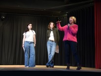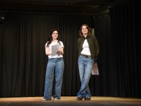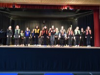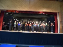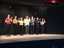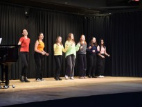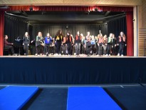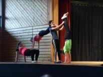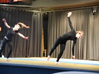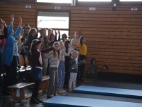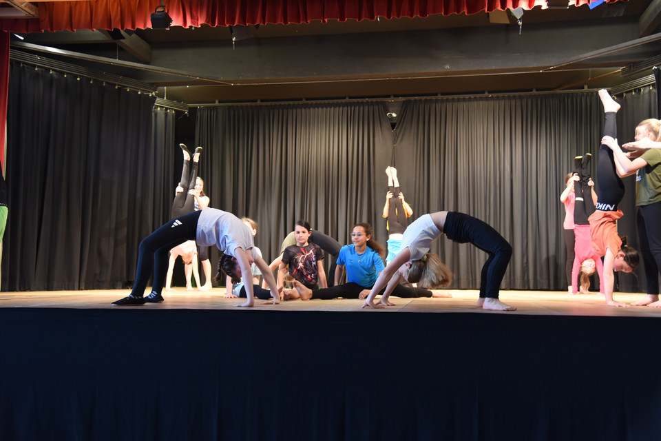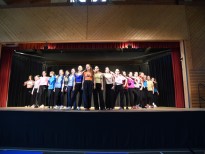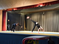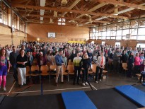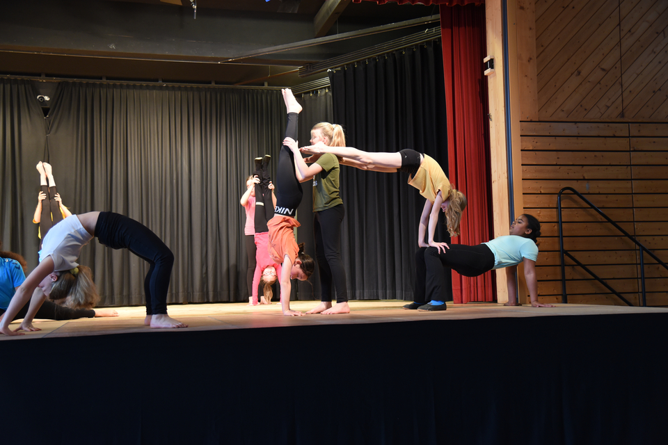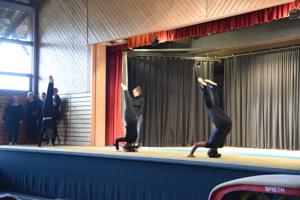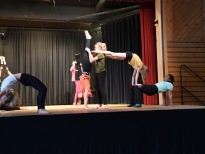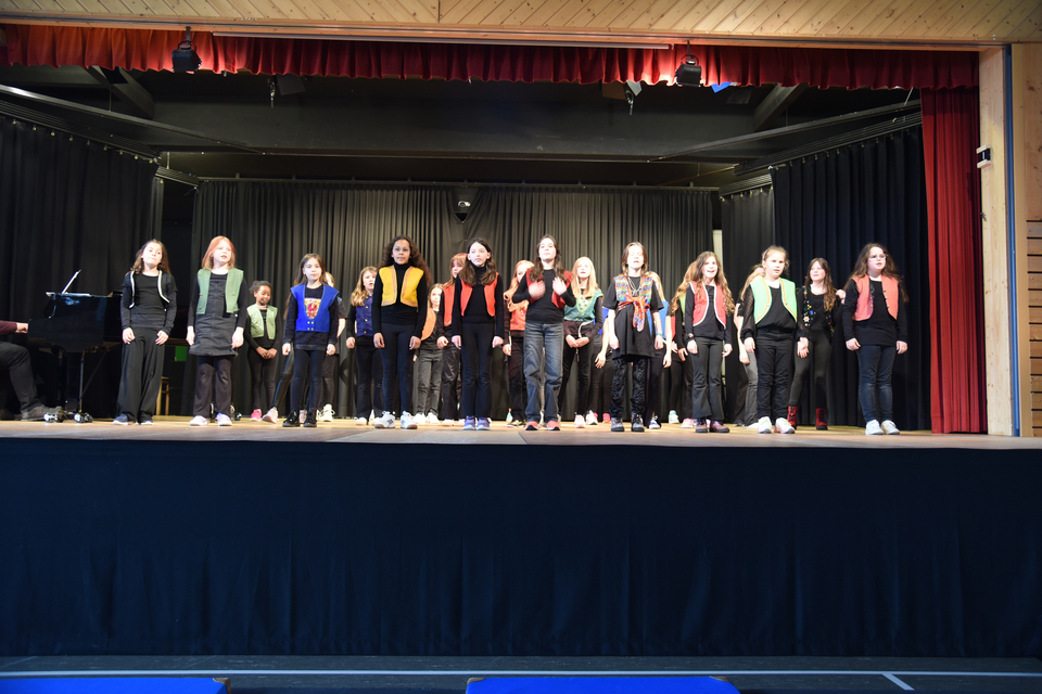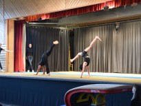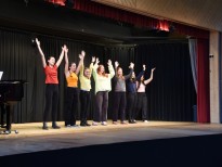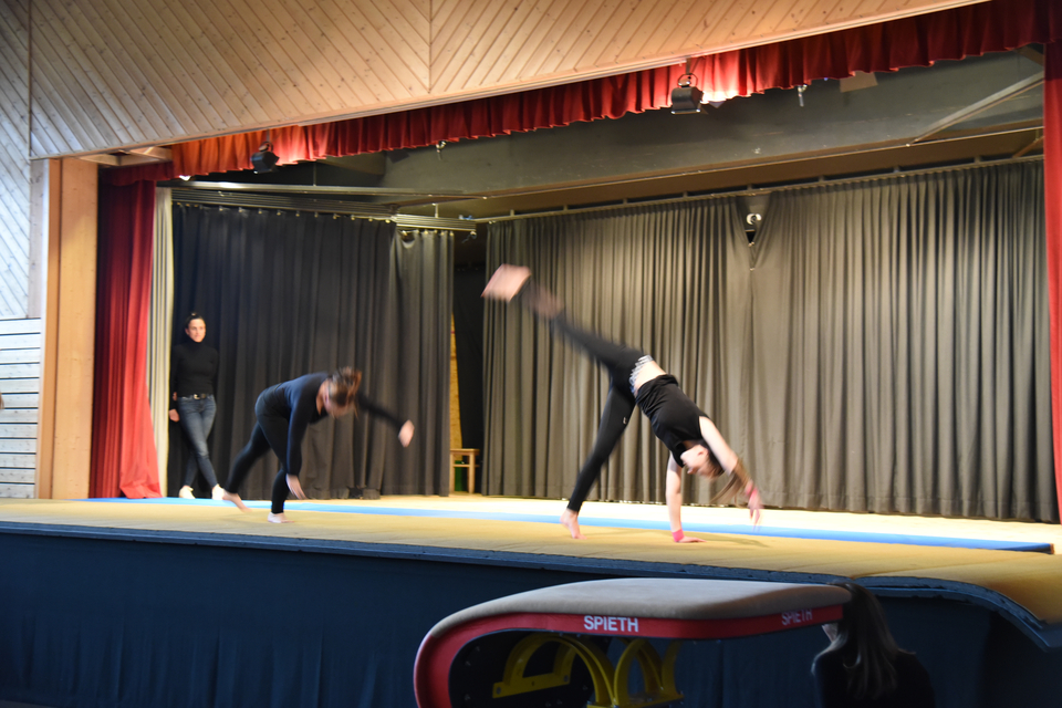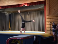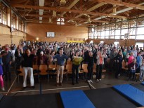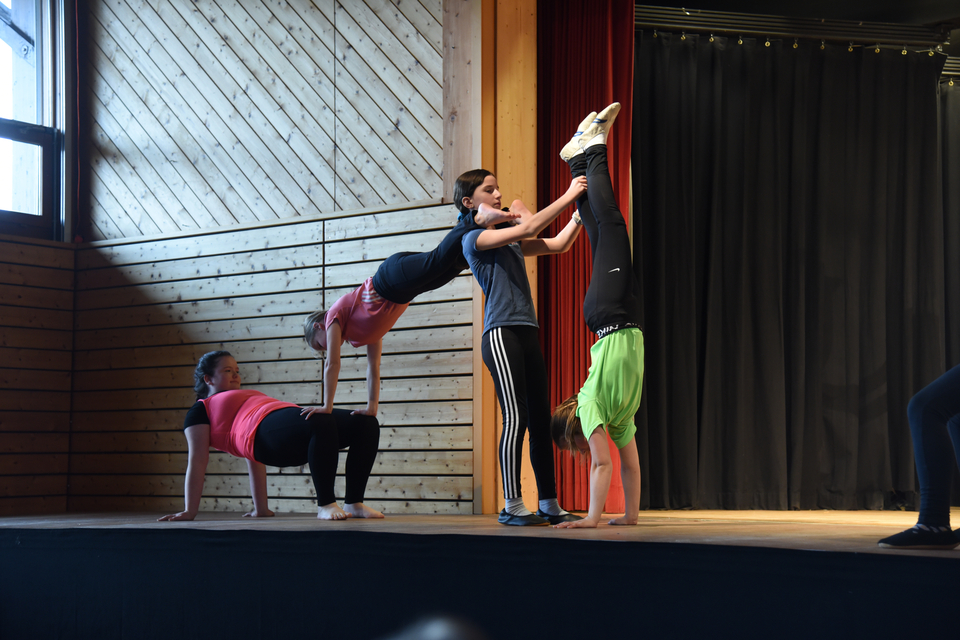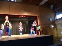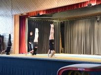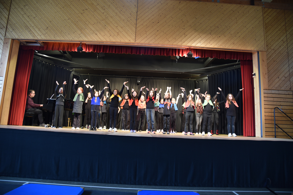 Das Highlight des Tages waren sicherlich die musikalischen und sportlichen Darbietungen in der Sporthalle. Hier zeigten die Schülerinnen ihren Eltern, was sie alles (neben dem Lernen) an der Schule so machen. Hier war alles dabei - angefangen von den Streicherklassen und dem Orchester, beides unter der Leitung von Gudrun Hafner, über stimmvolle Gesangsdarbietungen des Chors und der Waldlerchen unter der Leitung von Isabell Marquardt bis hin zu mitreißenden und abwechslungsreichen Tänzen und Vorführungen einzelner Klassen und der klassenübergreifenden Turnschau. Die Musikstücke waren abwechslungsreich und bestens auf die Zusammensetzung der jeweiligen Gruppe abgestimmt. Die Tänze der Klassen deckten auch verschiedene Bereiche ab - Jumpstyle, Linedance und anspruchsvolle Choreografien. Sogar das Publikum wurde von der quietschbunten Truppe dazu animiert mitzumachen, das gab es so noch nie. Die Turnerinnen zeigten Handstand, Rad, Bogengang und vieles mehr und flogen in hohem Bogen davon - zumindest wirkte es so, als sie am Ende waghalsige Sprünge auf dem Trampolin wagten. Vielen Dank an die Sportlehrerinnen Jasmin Schick, Jennifer Frirdich, Claudia Madlener und Ines Schramm für das Einstudieren dieser tollen Shows!