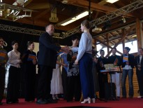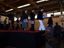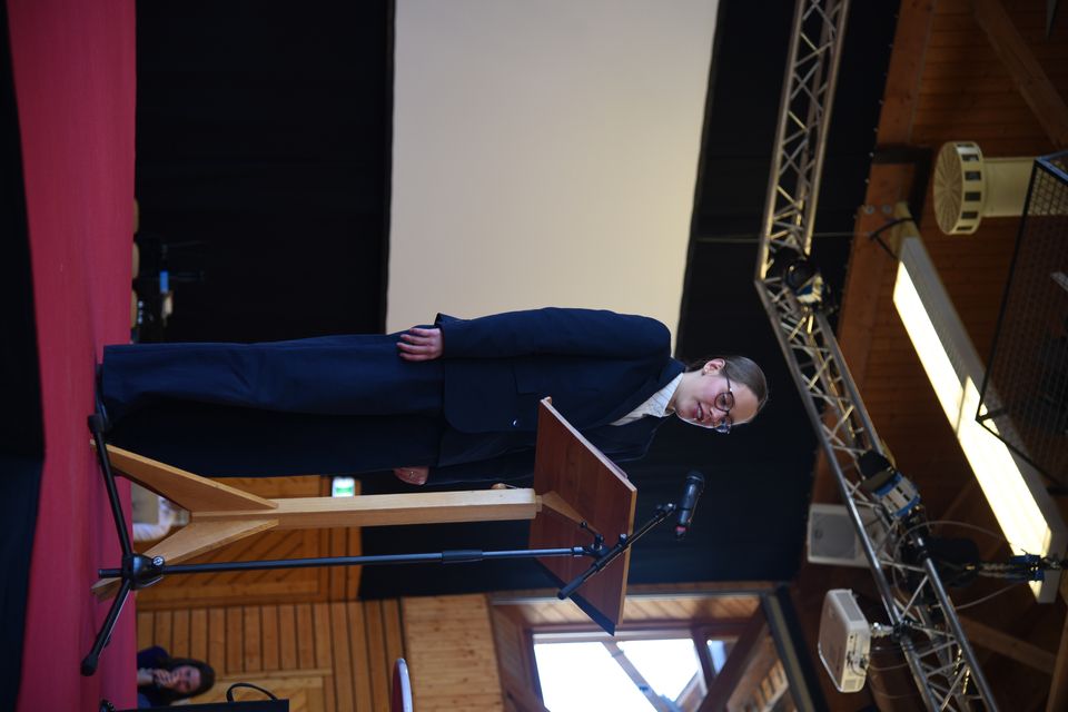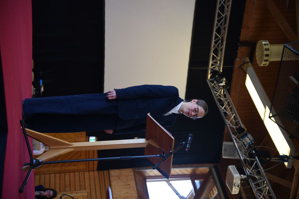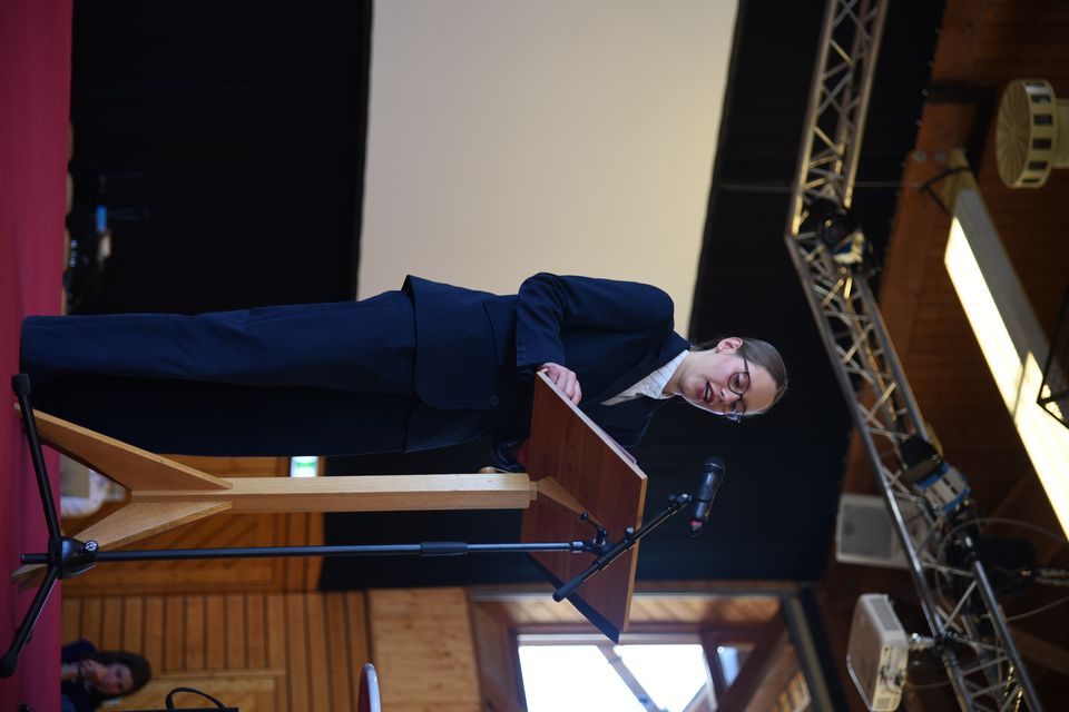 Sophia Weis sprach für die Absolventinnen ebenfalls von einem neuen Kapitel, auf welches sie "mit Wehmut, aber auch mit Freude" schauen. Sie gab einen kurzen Abriss der Lehrezeit, und bedankte sich bei den Meisterinnen, die jede auf ihre Art und mit ihren Tipps und Tricks dazu beigetragen hat, dass sie erfolgreich den Abschluss geschafft haben. Sie nahm auch Bezug auf Frau Linsters Aussage mit dem Anfängergeist - zum Beispiel beiden Prüfungsstücken sah vieles manchmal vielleicht aussichtslos aus. Aber mit Fleiß und Beharrlichkeit kann man sich auch manchmal selbst übertreffen und irgendwie doch alles schaffen.