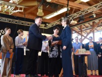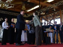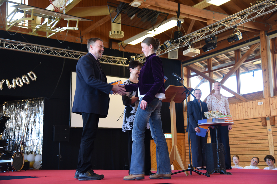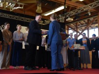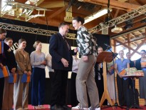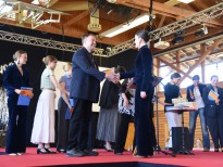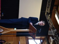 Vizepräsident der Handwerkskammer Reutlingen Paul-Gerhard Alber betonte gleich zu Beginn seiner Ansprache, dass er noch nie vor einer rein weiblichen Abschlussklase im Handwerk gestanden ist - der Frauenanteil in der Handwerkskammer sei etwa bei 20% - da leiste die Heimschule einen sehr großen Beitrag. Alber betont in seiner Rede, dass die HWK eine duale Ausbildung absolut befürwortet, der doppelte Abschluss sei sehr viel wert. Dies wird unterstrichen durch die Erfolge der Ausbildung an der Heimschule. In jedem Jahr sind Absolventinnen bei Kammer-, Landes- und sogar Bundeswettbewerben vorne mit dabei.