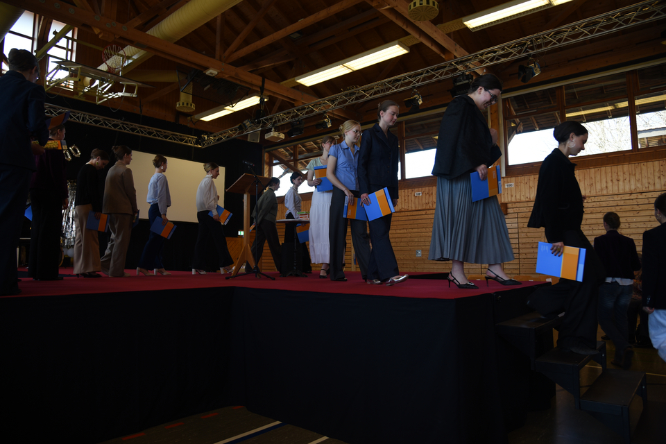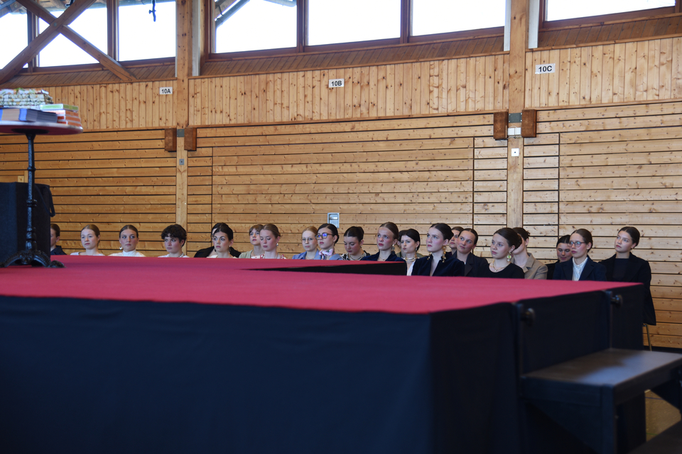 Am 05.04. war es für 24 junge Frauen soweit - sie wurden von Lehrlingen zu Gesellinnen. Die Turnhalle der Heimschule Kloster Wald ist gut gefüllt mit allerlei Persönlichkeiten des regionalen Handwerks und der Gemeinde Wald und den Familien der Jung-Gesellinnen.