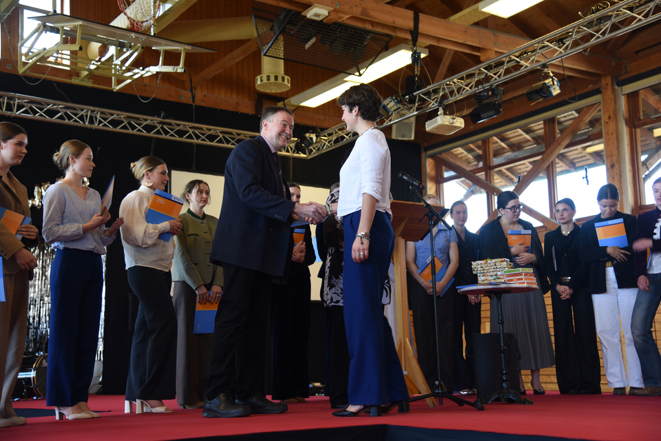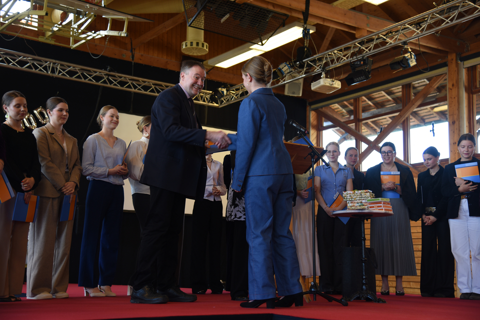 Internatsleiterin Rita Schmid schloss sich ihren Vorredner:innen an und beglückwünschte alle Absolventinnen. Vor allem für die internen Gesellinnen war Wald ein großes Kapitel in ihrem Leben - aber die Türen von Kloster Wald werden ihnen immer offen stehen.
