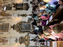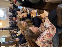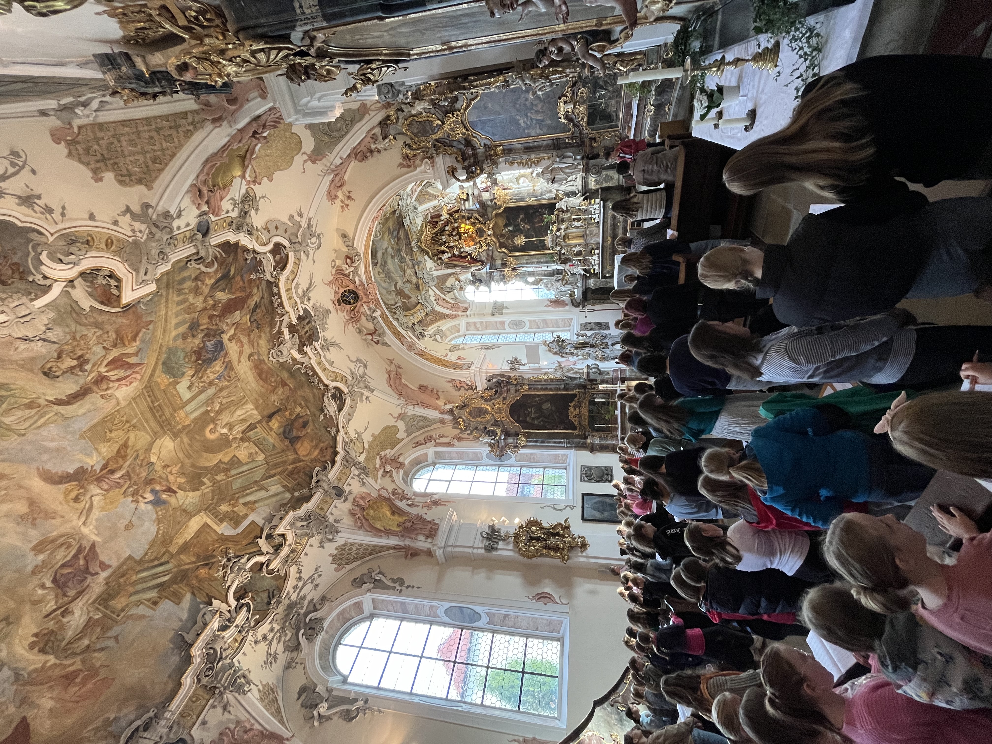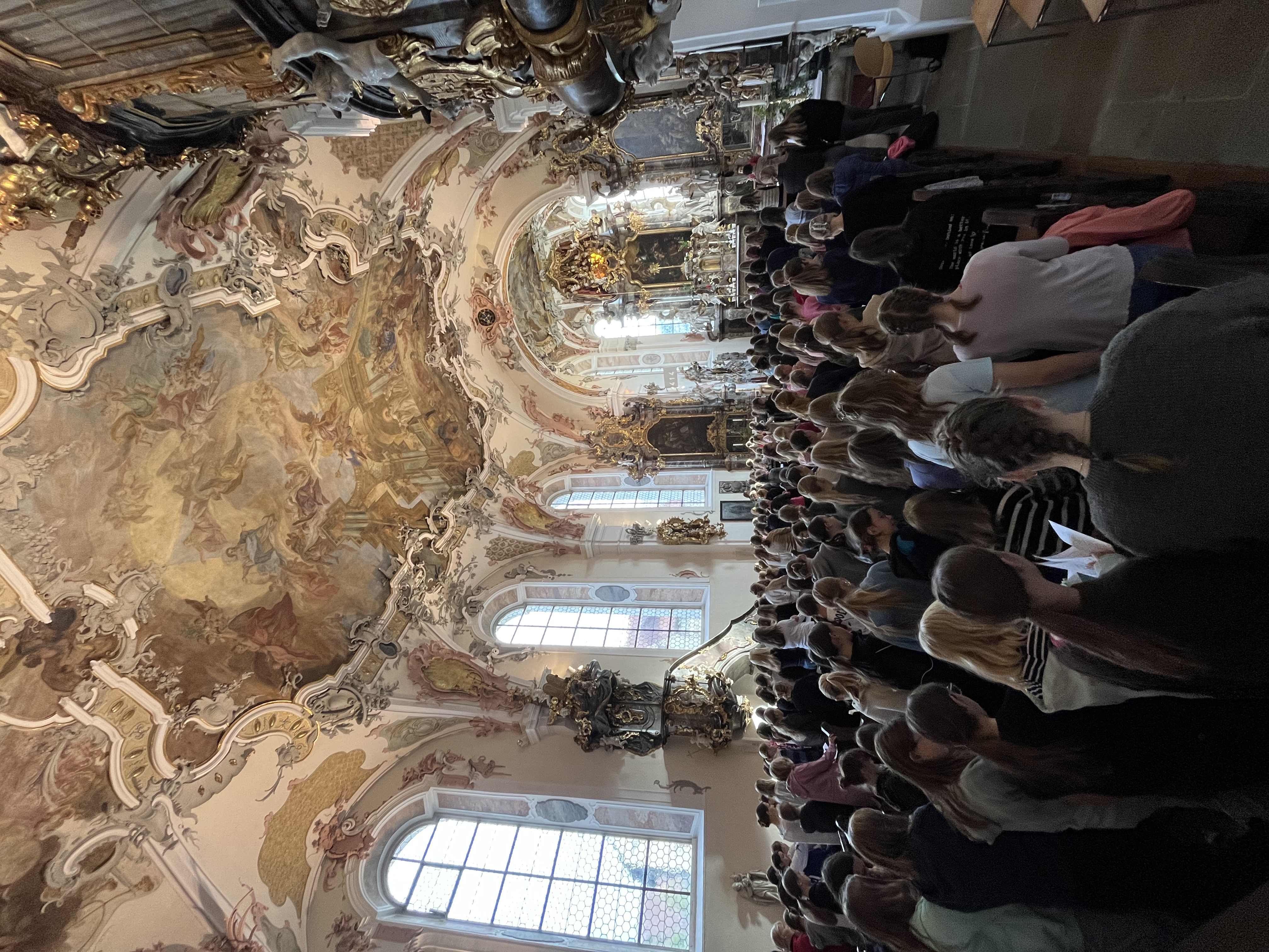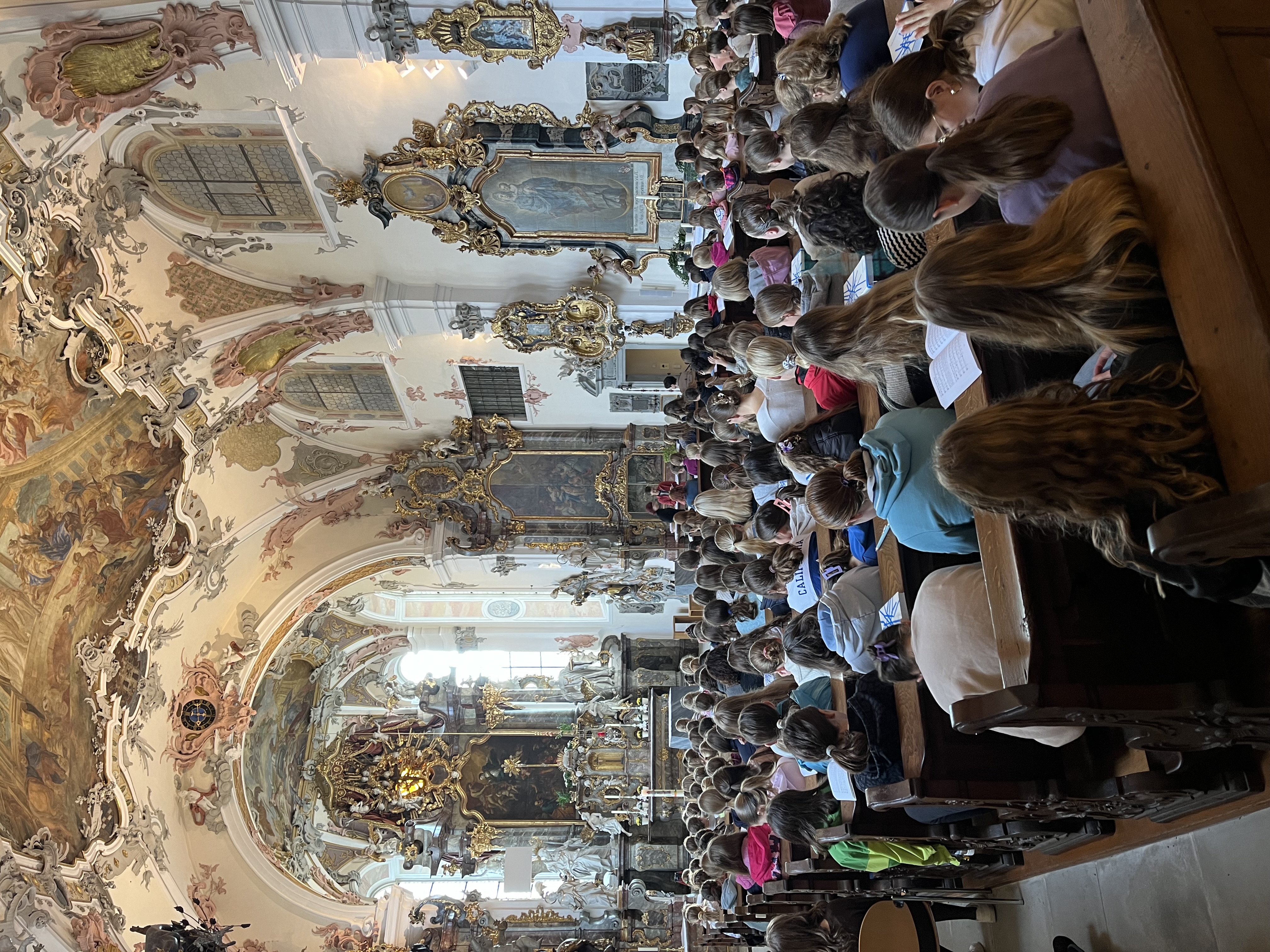 Nach einem musikalischen Intermezzo – vor allem die Lieder „Hallelujah" und „Laudato Si" wurden von der Schülerschaft begeistert mitgesungen, Alexander Schlegel begleitete an der Orgel – kam es schließlich zum Spenden des persönlichen Segens in Form eines kleinen „Cocktailschirmchens", das jede Schülerin erhielt – und wobei weitere Oberstufenschülerinnen erneut mit Engagement glänzten.