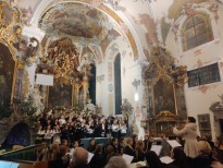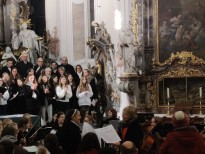 Im zweiten Teil des imposanten Konzerts war der Scheinwerfer nebst Chören und Streich-Orchester erneut auf einige Solistinnen gerichtet: Nele Hader und Ina Hafner an der Violine, Gudrun Hahnemann am Euphonium sowie Magdalena Schmuckers sonore Stimme verzauberten das Publikum in Rekurs auf Stücke von unter anderem Georg Philipp Telemann und Georg Goltermann. Mit dem bekannten „I will follow him" aus dem Film „Sister Act" von 1992 wurde schließlich der finale Veranstaltungsteil eingeleitet, in welchem die Chöre nochmals zu Höchstform aufliefen. Die klangvolle und atmosphärisch dichte Weiterführung bildete „Adiemus" des walisischen Komponisten Karl Jenkins. Mit dem gemeinsamen Singen des Kirchenliedes „Macht hoch die Tür" durch alle Besucher*innen inklusive der Musiker*innen und Sänger*innen, begleitet an der Orgel von Alexander Schlegel, fanden schließlich Besucher und Besuchte im Geiste der anstehenden familiären Festtage musikalisch zusammen – ein toller Abschluss des rund 80-minütigen Konzerts.