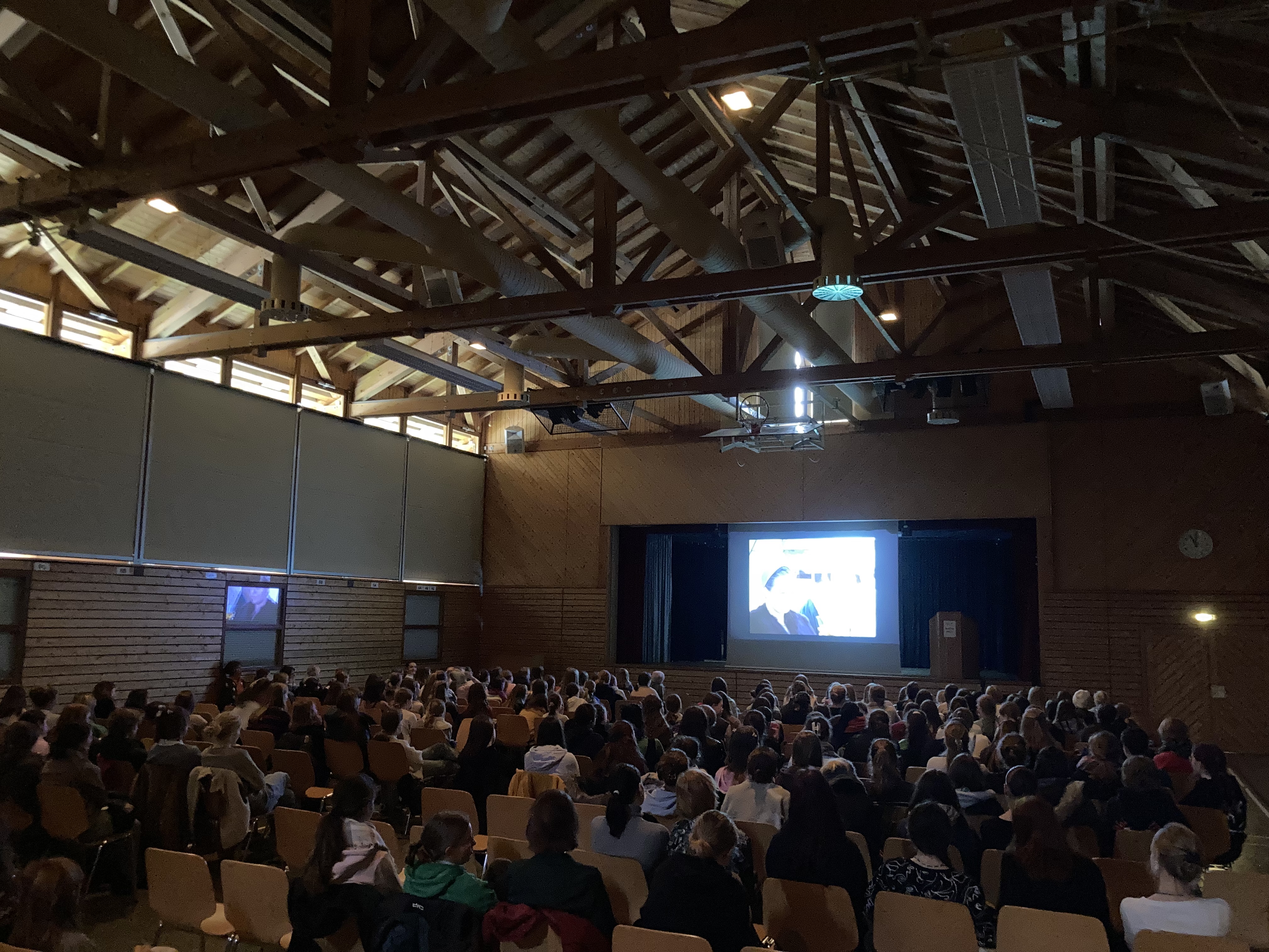 Der letzte Schultag des Kalenderjahres 2023 begann in vielen Klassen mit abschließenden Spielen oder einem gemeinsamen Frühstück bzw. Kuchenessen, bei welchem die vergangenen Monate Revue passiert wurden. Um 10 Uhr ging es für die Schülerschaft dann zur Turnhalle. Während die Kursstufe im Foyer-Bereich Waffeln und Punsch anbot, versammelten sich alle anderen drinnen zum alljährlichen gemeinsamen Schauen des Weihnachtsfilms, einem schönen Walder Abschlussritual. Nach dem Film und einem kleinen Impuls für die anstehenden Weihnachtsfilm durch Schulseelsorgerin Andrea Wahl wurde noch gesungen und getanzt, ehe es beseelt und zufrieden in die wohlverdienten Ferien ging; mit Ausnahme der Chor- und Orchesterschülerinnen, die nebst einigen Solistinnen am Abend noch ihren großen Einsatz haben würden.