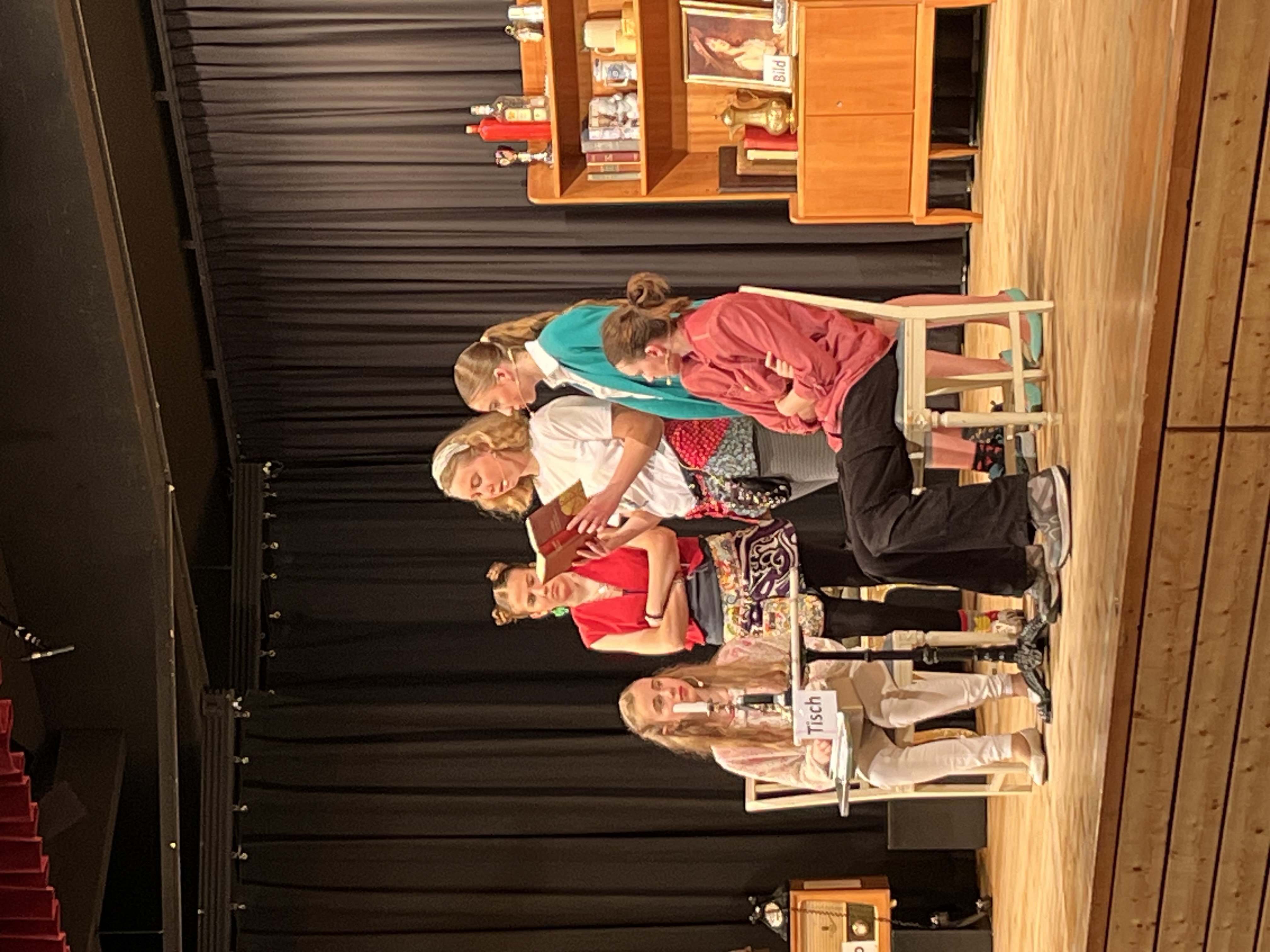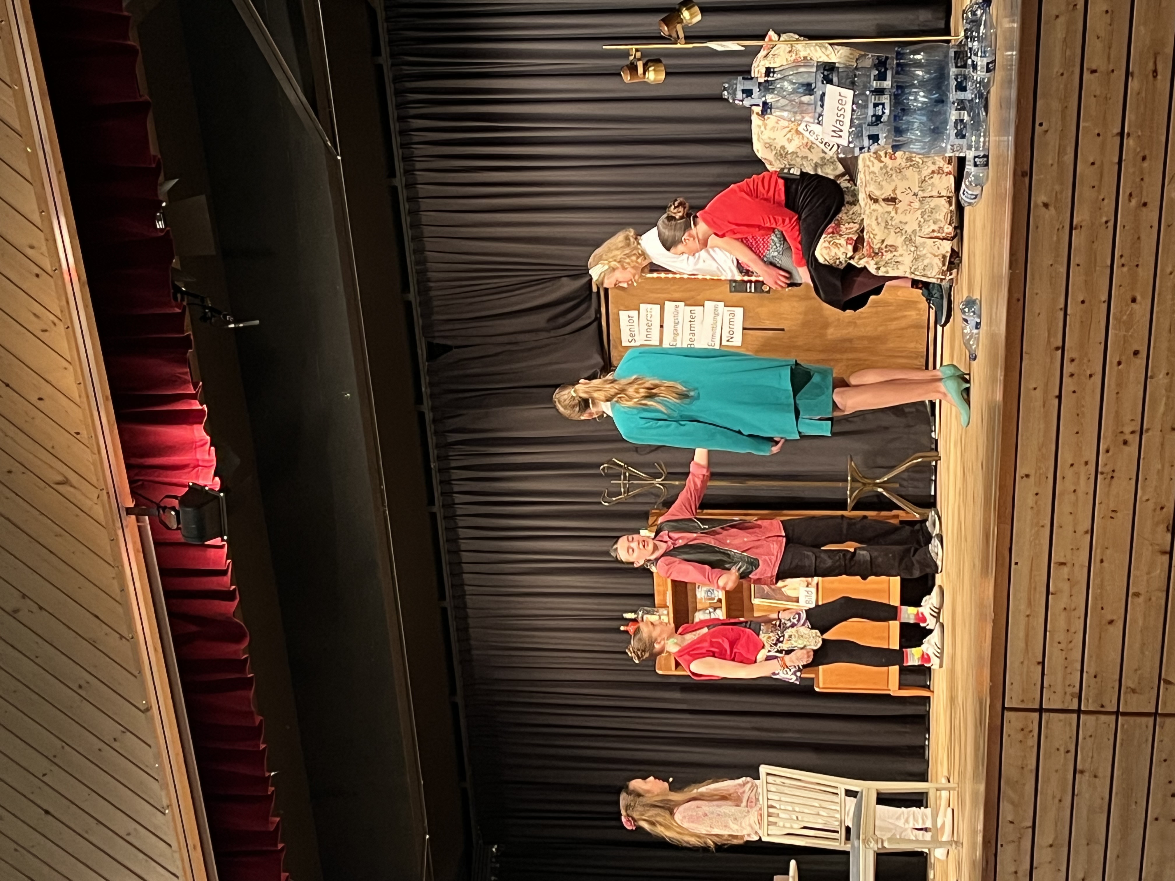 Den Jungschauspielerinnen der Mittelstufe ist höchster Respekt für ihre Darbietung zu zollen, angefangen bei der arroganten Frau von Vittel über ihre immer selbstbewusster werdende Assistentin Alexa, das stets keifende Ehepaar Karin und Matthias – letzterer permanent miesepetrig – bis hin zum energetischen „Good vibes only"-Duo. Unter der Regie von Corina Rues-Benz ist ein intensives, kraftvolles Stück entstanden. Das gelungene Bühnenbild wie auch die weitere Ausstattung, der effektvolle Einsatz von Licht und Musik sowie Geräuschen – alles passte schön ineinander und konnte unter großer Mithilfe der Licht und Ton-AG sowie Hausmeister Alexander Schlegel toll zur Geltung gebracht werden.