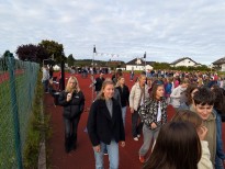Zum Abschluss formulierten vier Schülerinnen mehrere Fürbitten, Andrea Wahl thematisierte gemeinsam mit den Schulsprecherinnen die neuaufgestellte SMV und der Reihe nach rannten alle Gruppen durch den Startbogen ins neue Schuljahr. Was für ein schöner und besonderer Auftakt!
